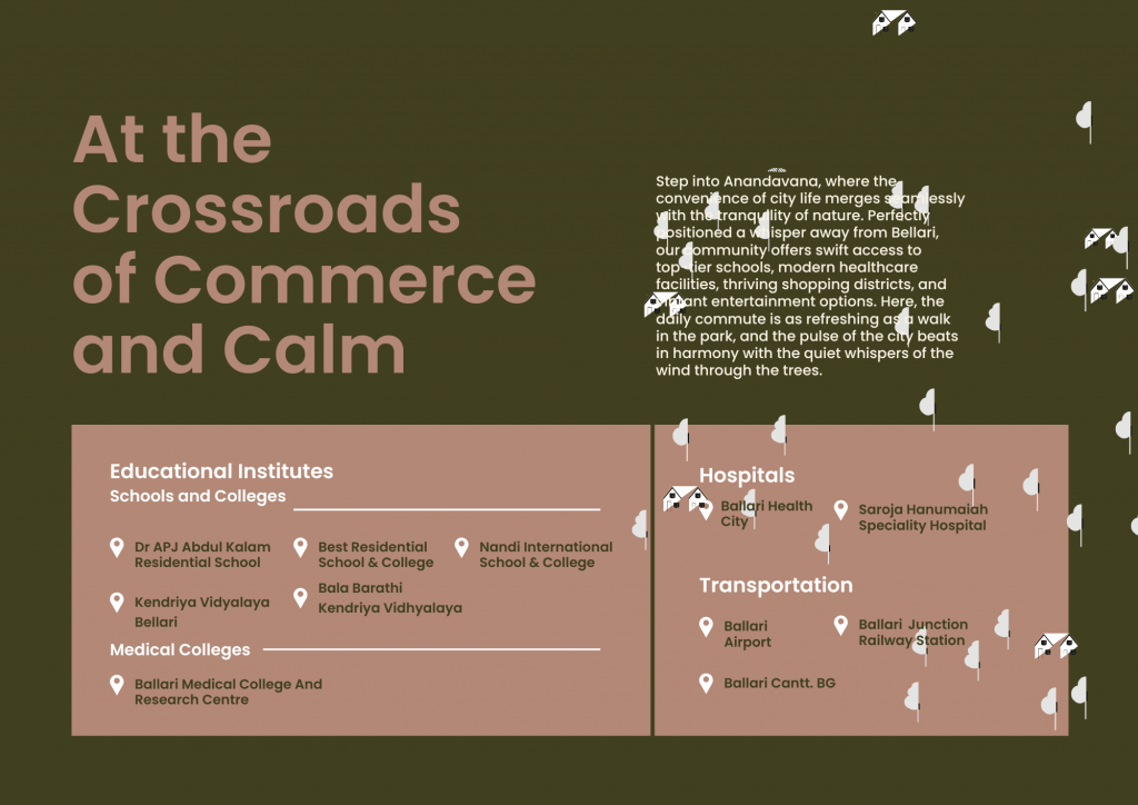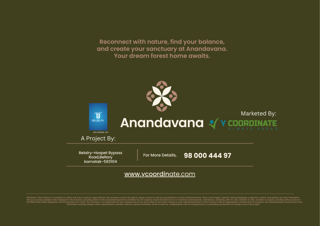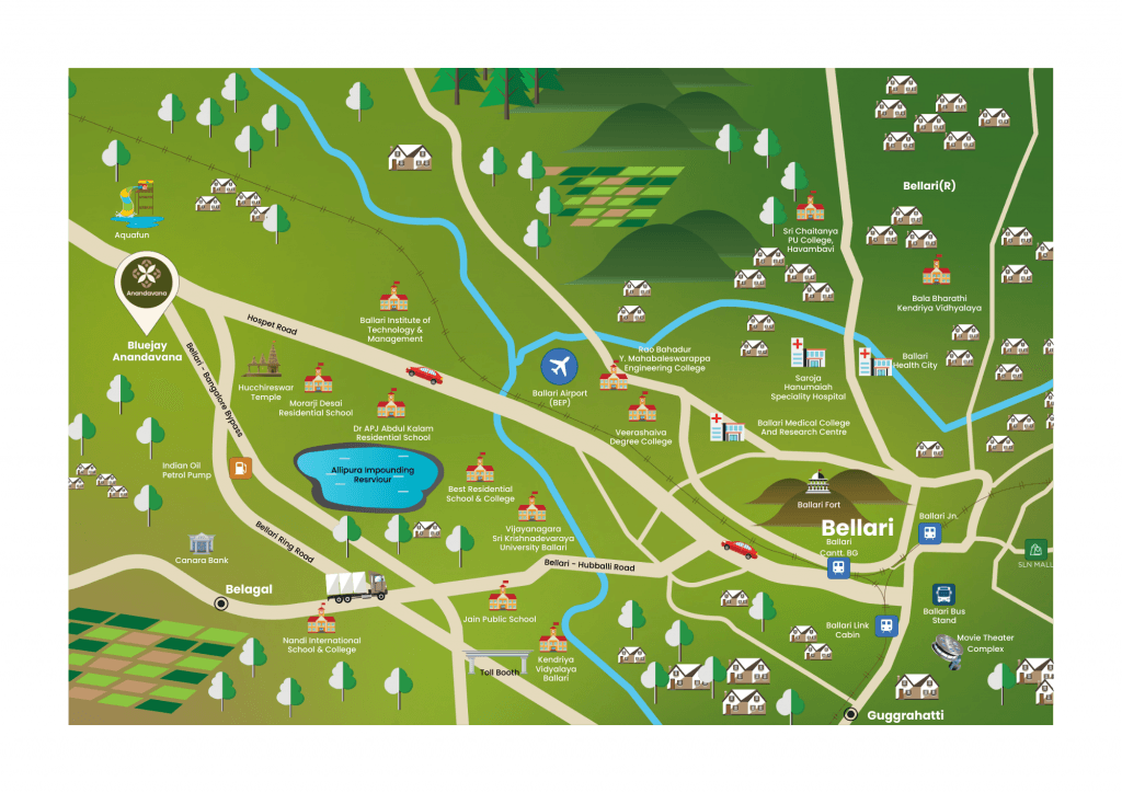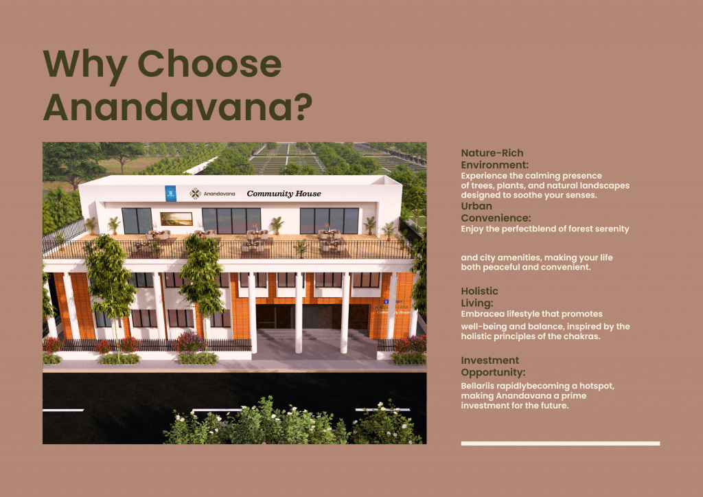 Nestled in Bellari, Anandavana offers a serene forest-themed township designed to bring nature’s tranquillity into your busy urban life. Imagine waking up to the rustling of leaves, the chirping of birds, and the fresh scent of greenery, all within the heart of the city. Anandavana is not just a place to live, it’s a sanctuary where you can reconnect with nature and find inner peace. At Anandavana, each plot is a canvas for you to build your dream home. Create a space that reflects your personality and desires while being surrounded by the beauty of nature. Our meticulously planned township ensures that every resident enjoys ample green space, clean air, and a sense of community.